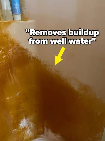 Promising review: "This stuff is absolutely wild. I had been trying to clean my shower/tub forever, because it had a thick layer of caked-on calcium deposits from years of hard water buildup. Last year, I manually scraped every inch of my shower with a razor blade and removed 90% of the film, but there were spots I couldn't reach with the blade and some residual discoloration on the plastic from the previous buildup. I tried my best to remove the rest, but NOTHING worked to polish the shower up, so I just gave up and figured I'd have to live with the permanent staining. Then I found this little bucket of magic. It literally cleaned and polished the shower so well that, if I didn't know any better, I'd assume I had just had a brand-new shower installed. Absolutely bonkers. Honestly, just buy it." —Mike Harrington