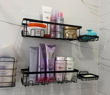 Promising review: "This product is exactly what I needed for our small bonus shower. It is a simple stand-up shower that is in the basement and has zero places for shampoo. After purchasing the Veken Shower Caddy Set, I can now keep my small shower stall organized. The suction power is significantly better than that of others I've tried in the past, and it held immediately, even though the instructions suggest waiting 24 hours before use. The thickness appears to be thicker than that of the other brand and more durable. It is very easy to install, with no complicated instructions, just peel and stick. This is a great product, not to mention a great price for all the items you get." —Diana