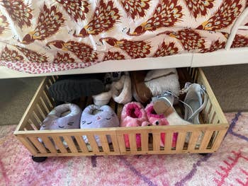 Promising review: "I never realized how much space I was wasting under my bed until I got these storage containers. They slide in so easily, and I love that they have wheels because it makes it so easy to pull out and put things back. I’ve been using them for my socks and extra bedding, and it feels amazing to have everything tucked away but still super easy to get to. The bamboo looks way nicer than plastic bins, too, and the dust bag is a great addition. I finally feel like my room has some breathing space!" —Danny