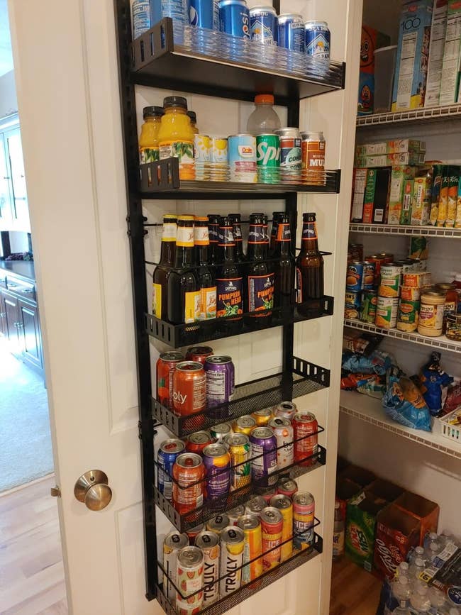 Promising review: "Sturdy build, easy to put together, and it does exactly what it says. We removed a full cupboard of spices and were able to fit them in the organizer behind the pantry door. Soo much easier to see and find items. It was nice to have the option of attaching it to the door, hanging it on the door, or attaching it to the wall." —Wesinoil