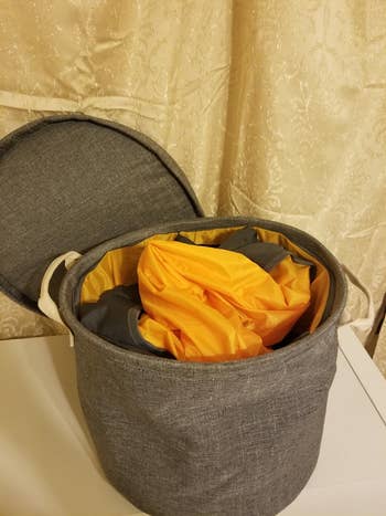 Promising review: "What a great idea! Perfect for my small bathroom. Very little room on my sink, so this is perfect when I’m doing hair and makeup! Plenty of room for all the tools I need! So easy to roll on and off, easy to clean, and well made!" —Mama Jay