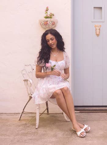 Promising review: "Saw this beauty from the front door of Walmart the moment I walked in. Took my breath away. I literally ran to the rack and fell in love. It's such a gorgeous print. The price was also perfect. However, I didn't buy it in-store. I arrived home still thinking about that dress and ordered it from Walmart. Received it the next day and fell in love with the dress all over again. So happy I did. The dress is truly exquisite. Can't wait to wear it. I will be stunning. 🥰" —Karen