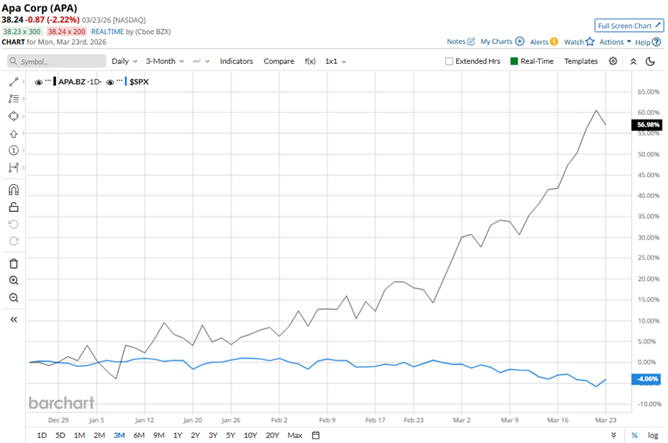 With a market cap of $13.8 billion, APA Corporation (APA) is an independent energy company engaged in the exploration, development, and production of natural gas, crude oil, and natural gas liquids. The company operates major oil and gas assets across the United States, Egypt, and the North Sea. Companies valued at $10 billion or more are generally considered “large-cap” stocks, and APA fits this criterion perfectly, exceeding the mark. In addition, it is actively involved in exploration and appraisal activities in Suriname and holds interests in projects in Uruguay and other international locations. Micron Technology Hikes Its Dividend 30% Due to Surging FCF - MU Is Worth 34% More - What's the Best Play? As Trump Admin Warns on Airport Closures, Should You Sell Delta Airlines Stock? Iran War, Oil Volatility and Other Key Things to Watch This Week Our exclusive Barchart Brief newsletter is your FREE midday guide to what's moving stocks, sectors, and investor sentiment - delivered right when you need the info most. Subscribe today! Shares of the Houston, Texas-based company have pulled back 3.5% from its 52-week high of $39.51. APA stock has surged 57.7% over the past three months, surpassing the broader S&P 500 Index's ($SPX) 3.9% drop in the same period. APA stock has soared 86.4% over the past 52 weeks, outpacing SPX's 17.2% return. The stock has been trading above its 50-day moving average since June 2025. Also, it has moved above its 200-day moving averages since late August 2025. Shares of APA Corporation rose 4.5% following its Q4 2025 results on Feb. 25 as the company delivered strong performance, including quarterly net income of $279 million ($0.79 per share), exceeding market expectations. Investors were also encouraged by solid operational metrics such as 460,000 BOE/day production (387,000 BOE/day adjusted) and robust U.S. oil output of 132,000 barrels per day, alongside a 10% year-over-year increase in Egypt gas production. Additionally, confidence improved due to a 9% increase in proved reserves to 1,056 million BOE, and a validated 10-year Permian inventory with significant upside potential. In comparison, rival ConocoPhillips (COP) has lagged behind APA stock. COP stock has gained 35.2% on a YTD basis and 24.2% over the past 52 weeks. Despite the stock’s strong performance, analysts are cautious about its prospects. APA stock has a consensus rating of “Hold” from the 30 analysts covering it, and as of writing, the stock is trading above the mean price target of $29.82. On the date of publication, Sohini Mondal did not have (either directly or indirectly) positions in any of the securities mentioned in this article. All information and data in this article is solely for informational purposes. This article was originally published on Barchart.com