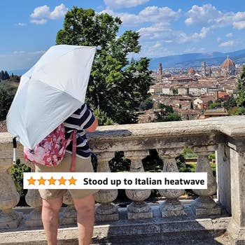 We hope you love our recommendations! While every product is independently chosen by our editors, BuzzFeed and our publishing partners may collect a share of sales or other compensation from the links on this page. You can read more about how our affiliate partnerships work in our Editorial Standards & Ethics Guide. Yes, you *can* pack in just a carry-on and still bring everything you need. Now you can really *maximize* your size based on the airlines you fly most often. This one checks all the boxes: super roomy, zips completely open (like a suitcase — so it's easy to find what you need), has plenty of pockets (including one for shoes and a separate wet bag!), and a strap that slides down over your luggage handle for easy transport. And reviewers say it meets even Spirit and JetBlue's personal item rules and fits under airplane seats — just double-check the size you buy! I've traveled with this suitcase several times (including a few international trips), and it's really roomy and easy to keep organized, and it has comfy straps! Get it from Amazon for $28.99+ (available in five sizes and 25 colors). Promising review: "I bought this backpack for work. It's the BEST backpack I've ever used. I needed one with several pockets and not too big or heavy. I found that with this backpack, I can fill it and still have room! There's even a shoe and clothing compartment for traveling! The straps are just wide enough to stay on your shoulders, especially with the snap straps in front. I also love the color, and it's true to the picture's color. If you're looking for lightweight with tons of pockets, this is what you need!" —Kelly Miller Promising review: "This is a perfect size backpack for traveling on a plane as your personal item, especially to international destinations. You could fit rolled-up clothes in here for another week, and it has a very handy shoe bag and tons of places for your electronics. This will be an excellent addition to my carry-on suitcase. Best purchase all year. I consider myself an expert on travel bags. I have way too many. It’s smaller than it looks but so roomy." —AP I gave in and bought this last year, and it's my new go-to bag for everything from grocery runs to appointments! And on all my airplane trips, I use it for my in-flight essentials: my Kindle, AirFly Bluetooth adapter, headphones, hand sanitizer, lotion, and lip balm. BuzzFeed Shopping editor Elizabeth Lilly says, "I wear a size L/XL in clothing, and sometimes waist bags just don't work out so well for me. With this one, I can confirm that it fits around my waist comfortably without outerwear, across my chest without outerwear, *and* over a thick coat and several layers. The pockets inside are so handy, and I even had room to spare throughout my Iceland trip. Just make sure that you zip the zipper ALL the way because the zipper goes down pretty far on the sides for easier access to contents." Get it from Amazon for $12.98 (available in 35 colors). Promising review: "Got this for air travel. I normally travel with a carry-on and a backpack. Got this to hold my essentials and have them accessible. It’s big enough to hold my phone, wallet, passport, hand sanitizer, and ChapStick." —daisy rojas Many sites will give you the seasonal average weather for any date and location you can check ahead of time, so you can plan your outfits (or what you might need to buy) before the actual forecast is available closer to your trip. You can also look at *past* years for the same info! I always use this to plan the kind of things I need to bring when I travel...far in advance! Get this one from Amazon for $27.19 (available in women's sizes S–3X and 25 colors). Promising review: "Lightweight, water resistant, perfect for traveling! I bought this to wear in Iceland. It rolls up and goes into a little pouch, which makes it easier to carry. It kept me nice and dry when I was walking the rainy, misty streets of Iceland as well as the many waterfalls I visited. I highly recommend." —Karin M. Dixey It's also made of UPF50 fabric, so it's also great for carrying around your own personal shade when the sun is blazing! Get it from Amazon for $13.99 (available in 29 colors). Promising review: "Perfect for travel. I got this to stick in my backpack or suitcase when I travel. I did not want a bulky umbrella. This fit the bill. Compact but provides enough coverage for rainy days." —Deb The military-style roll is basically like the regular roll, but taken to ~the next level~. "Clown car" is all about ~stacking~ before folding and tucking. And if you like a classic fold but have a hard time seeing everything in your suitcase, the front-to-back style is a good option. It's also *great* for storing tees in your drawers at home so you can see what's what. It comes with a laundry bag to separate your dirty clothes on your way back, and the cubes have mesh tops so you can see what's inside! Get the set of six pictured above from Amazon for $18.99 (available in 25 colors and patterns). Promising review: "These packing cubes exceeded my expectations!!!! I was able to pack for a seven-day cruise: seven day outfits, seven evening dresses, six swimsuits and six swim cover-ups. Along with 10 pairs of undergarments, four PJ sets, and three bras. It was wild. I highly recommend! I used a Vera Bradley weekend tote to fit my packing cubes and then a separate bag for shoes, toiletries, etc. worked perfectly! Very happy with my purchase." —Elias Zuloaga Promising review: "My husband wanted me to take just a carry-on when we went to Paris and Switzerland last year. We were gone for 10 days and I had to pack dressy clothes, hiking clothes, clothes for the cold snowy mountains, and clothes for the warm May spring days touring Paris. I could NEVER have done it without these compression bags. I will always use these when I travel now. ALWAYS!!" —rmac Promising review: "Love this compact iron/steamer that gets the job done!! It works fabulo