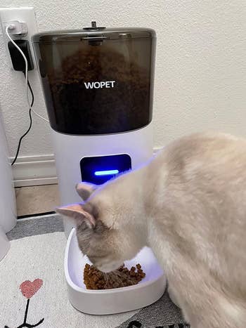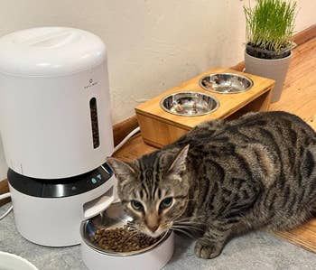 Promising review: "This has been a fantastic game changer for my two-cat household. Easy to assemble, easy to clean, and easy to set up. The scheduled feeding times have been great for early mornings and for while I am at work. I was worried that my cats would be wary of this machine (they can be suspicious and cautious) but they love it! We have had this for about two months and I feel like the price is well worth it." —Claire