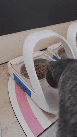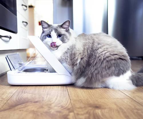 Using an automatic cat feeder may require more diligence in multi-pet households, especially if any of 'em are on a prescription diet. This is also helpful when you have a food thief on your hands who will try to steal their sibling's leftovers! This feeder pairs with your cat's microchip, so only they can access it. When they walk away, it closes to protect any food they may have left in the dish. Each dish can hold 13.5 ounces of wet or dry food. The lid closes and forms a tight seal, helping retain moisture and keeping food fresher longer.