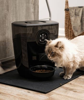 Promising review: "Amazing and life-changing. My kitty used to wake me up at 5:30 a.m. on the dot every morning, if not earlier, by pawing at my face and meowing. Now she waits patiently at the bowl. Not to mention being able to portion her out in tiny amounts through the app makes her diet much more manageable throughout the day. Definitely worth it." —Lauren B.