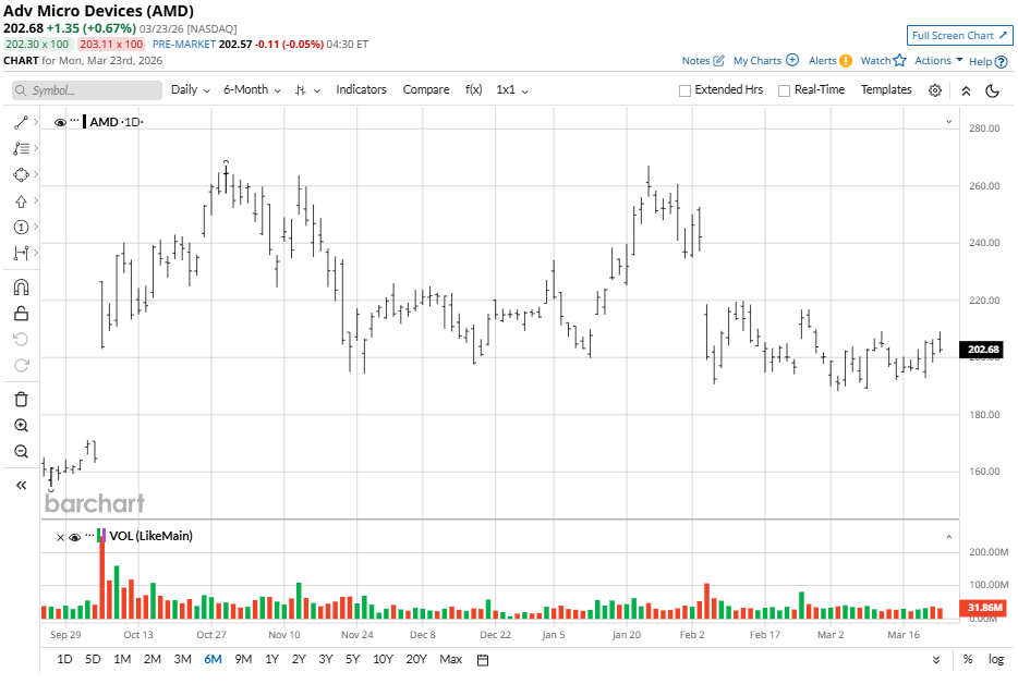 AMD has reflected a volatile but upward trajectory over the past year. The stock has experienced a significant 52-week range of $76.48 to $267.08, recently rebounding from a period of consolidation as investors digest the company’s massive growth projections. With a market capitalization of approximately $325 billion, AMD remains a favorite for growth-oriented investors betting on the AI supercycle.