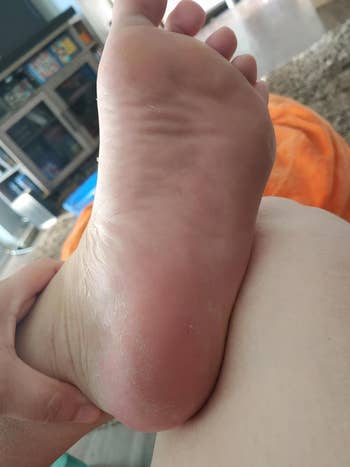 Promising review: "I was dubious at first, having seen this on TikTok. I can now confirm that it works as directed, and the results are amazing. 24 hours after I soaked my feet in the plastic bag, nothing happened. Then, 48 hours later, it started working. 72 hours, and it was in full working mode. Like other reviewers, I also suggest just letting the skin come off naturally. As someone who wears flip-flops often, I opted for socks and shoes during the shedding period to capture the skin, even when sleeping, because who wants chunks of dead skin in their bedsheets?! (it sounds so gross, but you’ll understand once you do it) The shedding lasts for a few days. The results are incredible. Will use this again!" —Vanessa