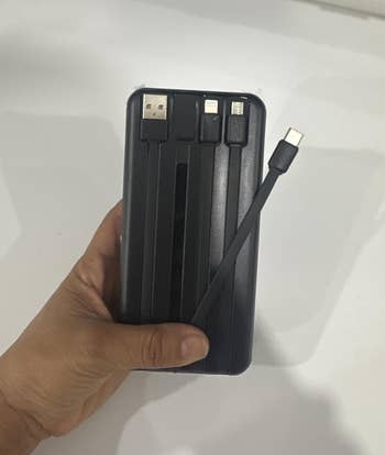 Promising review: "This portable charger is extremely powerful and perfect for travel or everyday use. The massive capacity easily charges my phone several times and still has power left over. The built-in cable is very convenient and sturdy, eliminating the need to carry extra cords. It’s great for long trips, emergencies, or when you don’t have access to an outlet.  The USB-C fast charging works impressively well and charges devices quickly and efficiently. It’s compatible with phones, tablets, and other USB-powered devices without any issues." —Brenda González