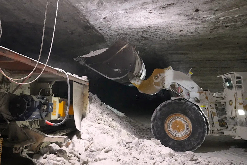 CLEVELAND, Ohio (AP) — Below Cleveland, in a subterranean world many surface dwellers don’t know exists, miners extract a crucial winter mineral — salt. The Whiskey Island salt mine, owned by food giant Cargill, helps supply road salt across the Northeast and Great Lakes, where a colder, snowier-than-usual winter has driven demand. Many municipalities exhausted supplies that typically last through spring, said Cargill spokesperson Emily Tangeman. “Our teams have been working overtime since September to support customers across the snowbelt,” Tangeman said in a statement, noting that early, persistent winter weather boosted demand across the industry. The mine beneath Lake Erie, one of the world’s largest, produces 3 million to 4 million tons (2.7 million to 3.6 million metric tons) annually, although that can fall short of demand in especially harsh winters. Located 1,800 feet (549 meters) underground, it's accessed from Whiskey Island, an industrial area on the shore right beside downtown Cleveland. The mine opened in the 1960s and operates year-round, with salt extracted by drilling and blasting through vast tunnels formed from an ancient inland sea that dried up millions of years ago. Inside, the mine is a maze of roughly rectangular caverns with chalky white walls and ceilings that extend for miles. It’s dimly lit and often pitch-black beyond the glare of headlamps and floodlights. Heavy machinery and conveyer belts rumble as small ATVs whisk miners around. Maintenance superintendent George Campbell said operations are continuous, with downtime used for upkeep and repairs to keep production steady. Cargill said it is prioritizing shipments to ensure salt reaches the areas of greatest need as winter lingers in some regions. Frequent smaller storms also increase usage, Tangeman said in the statement, requiring repeated salting and creating logistical challenges. A return to harsher conditions across the Eastern U.S. meant some cities — including Boston; Bangor, Maine; and Ithaca, New York — shivered through their coldest seasons in more than a decade. And winter weather is still not over in some parts of the country, so it’s not over in the Cleveland mine, either. Campbell said there’s still decades of salt left to be extracted. “I think that we have enough reserves to continue to keep people working for a long time,” Campbell said. ___ Whittle reported from Portland, Maine.