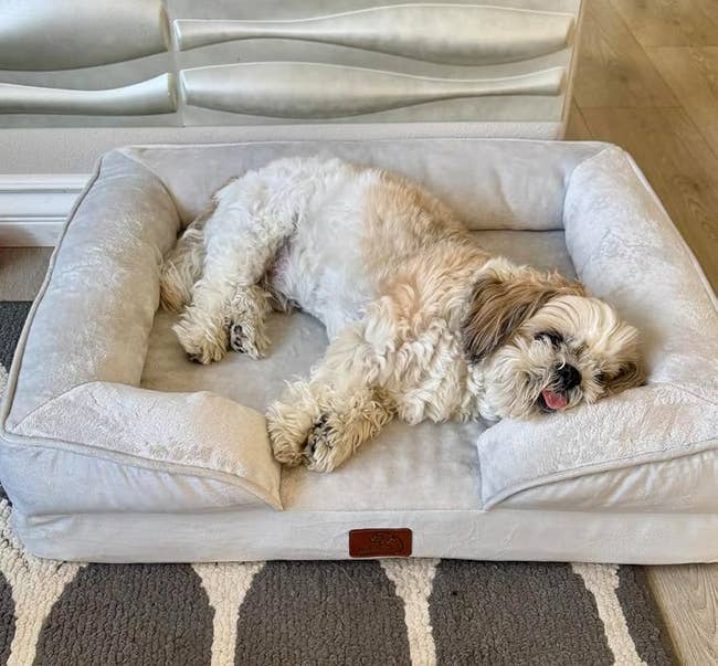 Promising review: "This bed is absolutely amazing, and worth every penny. Why, you may ask, because I have bought my dog so many beds and he would still end up on my couch. The minute he stepped into his bed, he was literally me when a new series comes out… absolutely slumped. He’s a 65lb medium-sized Staffy, and at 8 years old, it definitely looks like he’s getting the support he needs." —Ariana V.