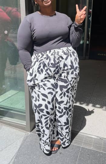 Promising review: "These are lightweight but not sheer or see-through. I’m in my 50s and have sworn off buttons and zippers on pants for the rest of my life, LOL. The elastic waist on these is soft and not constricting. Overall, these are great." —BK