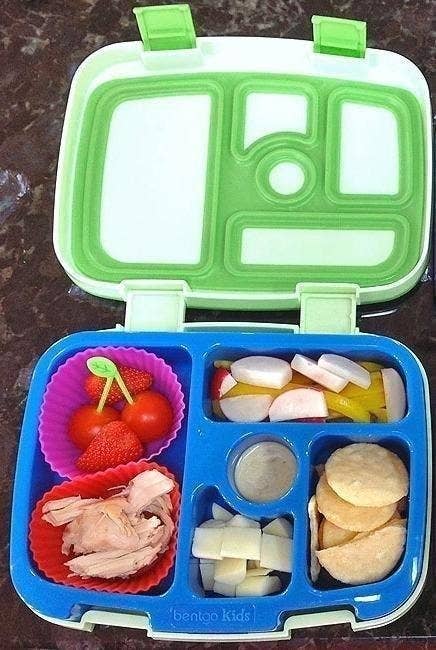 Promising review: "I purchased two of these, one for each of my elementary children, and they work wonderfully. I can easily pack a sandwich, veggies with dip, fruit, and a snack in the box. If they would like chips or crackers, I simply place those in the lunch box, along with an ice pack, to keep things cool. The Bentgo Box, a slim ice pack, and a small bag of chips or crackers easily fit in a child's lunchbox. The gaskets work well, and dressings/liquids do not leak to other compartments. So far, so good!" —Erin