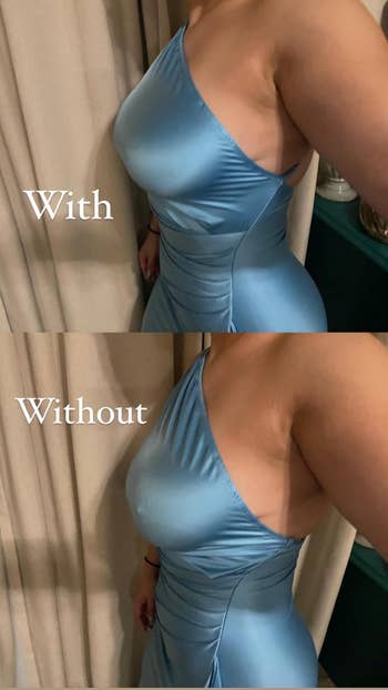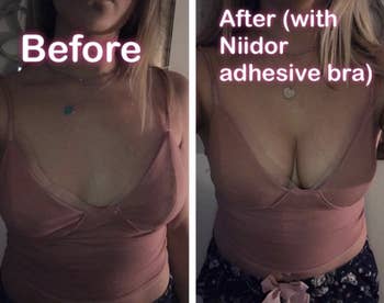 Promising review: "I was surprised, I give them a 10/10. I needed something comfortable and discreet to wear with low‑cut tops, and they work even better than I expected. They come with extra accessories, stick on super well, and give a very natural lift. They’re skin‑friendly, didn’t irritate me at all, and they saved several of my outfits. What I love most is that they’re reusable.” 💖🫶🏻" —Dayanara
