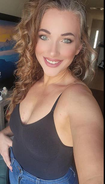 Promising review: "Obsessed! Finally got the TikTok body suit! I’m obsessed; it fits like a glove but isn’t cutting off my ability to breathe or stuff my face with food. The fabric is so comfortable! BUY IT!" —Kenley