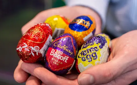 Creme eggs have been delighting - or not, depending on your palate - British tastebuds for more than 50 years. "I scran them up so fast," says Ethan in Manchester, who is on his way to a gym session. The 23-year-old, an Easter treat enthusiast, has tried Cadbury's other creme egg varieties - including a new Biscoff-filled one released this year. "I'm not a fan," Ethan says with a grimace. "It's too gritty, that texture ain't for me." You might have seen the caramelised biscuit Biscoff creme egg sitting alongside others in your local supermarket recently - a white chocolate version, Terry's chocolate orange, Lindt, Reese's peanut butter and more. The humble filled egg is just one of many Easter staples on the shelves that seem to be branching out into all sorts of flavours. But do shoppers really want to buy these creative versions of Easter classics or is a back-to-basics approach the way forward, particularly when the cost of living is rising? These items are available across all big supermarkets. BBC News visited three major ones this week to see what people thought - and views were torn. The ancient origins of hot cross buns have long been disputed by historians. And when it comes to new flavours, it turns out these currant-filled spiced buns - traditionally eaten on Good Friday - can be just as divisive today. At M&S varieties now include red velvet, lemon curd, tiramisu, caramel fudge, chocolate, cheese and apple incarnations. At Sainsbury's the range is similarly extensive with orange marmalade, salted caramel, carrot, cherry, rhubarb, ginger and cinnamon. Standing outside a supermarket Ethan tells us he's heard very good reviews of lemon curd hot cross buns. "I'd be up for trying all of them," he adds, looking disappointed we haven't brought samples. But around the corner, we meet Jann, who disagrees. "I'm not into all that," the 80-year-old, who lives near Oldham, says. "Just give me a hot cross bun, plenty of fruit⦠toasted and buttered. "It's got to be buttery." Another Easter treat, mini eggs, have also been expanding into different flavours in recent years. In 2024 Cadbury's released orange mini eggs, rivalling Terry's chocolate orange versions which first appeared in 2020, joining other milk and white chocolate varieties. And it's a similar story in the world of big Easter eggs. Visiting a supermarket in Manchester city centre, we see two kinds of "layered" easter eggs - one made of chocolate and a caramelised biscuit spread, the other with caramel but no biscuit. A "chocolate doughnut Easter egg" triggers curiosity - a shell blended with shortbread and fudge pieces, topped with sprinkles. Down the road we meet 78-year-old John, who tells us he's very open to trying new foods, but still has an allegiance with many of the classics. "You're kind of torn between holding on to the original and trying the new," John says. "But I quite like the hot cross bun with a bit of apple." His favourite treat, however, is the Simnel cake, a traditional fruitcake typically made with a layer of either marzipan or almond paste and associated with Lent. "You don't find it very much [now]," John laments. " It's a wonderful thing, very special for Easter." It's easy to see why more inventive Easter creations keep appearing on our shelves - people like to buy them. Research group Mintel says 75% of the 2,000 people it surveyed in December had bought food or drink for Easter in the last year, with chocolate the most popular purchase (48%) followed by cakes, sweet bakes or desserts (23%). More broadly, the agency also has research from October 2025 suggesting seven in 10 people generally enjoy food and drink that provides new experiences such as new flavours. But rising global cocoa prices mean chocolate is now 15% more expensive than it was a year ago - and Easter 2026 comes at a time when many household incomes in the UK are squeezed. While chocolate companies have been heavily criticised for shrinkflation in recent years, Cadbury archivist Sarah Foden insists creme eggs are "exactly the same size" as they were in 1971 - and showed us the moulds used in the company's Birmingham factory that year. Cadbury estimates the Easter chocolate market in the UK is worth around £700m. Its vice president of marketing Dave Clements says Biscoff-filled creme eggs are "doing incredibly well" - which the company believes is down to shoppers having "new desires about textures, tastes, flavours and bringing something a little bit different to more traditional eggs". The company is not alone in its confidence about the appeal of more creative Easter treats. Bakery Lottie Shaw's, which has been making treats in Yorkshire since 1912, says sales of its "hot cross tarts", which combine spiced fruits with treacle in a shortcrust pastry paste, have surged by 800% since launching last year. Neil Rocklif, who is in charge of innovation at Finsbury Food Group which bakes about 100 million hot cross buns a year for several major supermarkets, says experimentation with varieties began in the early 2010s, but exploded a few years ago following lockdown. Cakes and desserts are a big inspiration for his team, and they're proud of a new hot cross bun inspired by carrot cake. "We used roasted carrot shreds in that one [with] pockets of white chocolate in the bun to replicate the frosting that you'd normally get on your carrot cake," he explains. "And then to give it some crunch, we used pumpkin seeds in there as well." Of the millions of hot cross buns the company makes every year, two thirds are fruit-based. When it comes to new flavours, "it's your imagination, that's the only limitation", Neil says. "I've eaten all of the different flavours at this point," he adds with a grin. "All in the name of research, of course." Outside another Manchester supermarket we meet Alina, 24, who says the rising cost of chocolate means she is buying less than she used to - and is now baking more at home instead. "I work in retail," Aline tells 