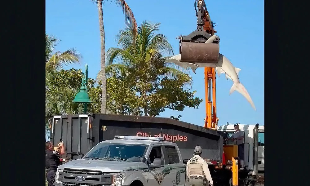 A great hammerhead shark that was found dead Thursday on Naples Beach, Fla., has been collected by scientists so a necropsy can be performed. The accompanying footage, captured by Christian Hernandez, shows the estimated 300-pound shark being placed via heavy machinery onto the bed of a transport truck. The Florida Fish and Wildlife Conservation Commission will conduct the necropsy in the hope of determining the cause of death. ALSO: Can you spot the rattlesnake in neatly kept Arizona garage? The sight of the massive shark – on the beach and being lifted by the crane – generated lots of excitement. Naples resident Frederick Pulice told the Gulf Coast News: “I’ve been living here in Florida ever since the 60s… I’ve seen sharks but noting the size of that.” Great Hammerhead sharks, which can measure to nearly 20 feet, are globally listed as critically endangered. They’re protected in Florida waters, but are caught in federal waters and throughout and their tropical range via commercial fishing methods. Earlier in March, a smaller great hammerhead shark, measuring 12 feet, was found dead near Juno Beach Pier in Palm Beach County. The shark had apparently been killed for its fins and an investigation is ongoing. This article originally appeared on For The Win: Great hammerhead shark removed by crane from Florida beach