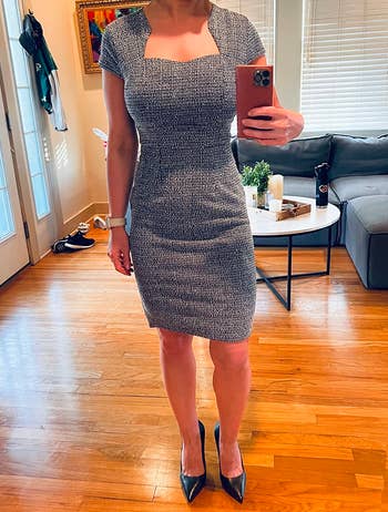 Promising review: "Buy the dress!!! If you work in a professional environment or just want to dress up, this dress is for you. It has a slight stretch, unlike other tweed styles, so it will hug all your curves. I got so many compliments on it. It’s very comfortable and very stylish." —Jake/Shelby Arians