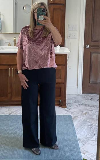 Promising review: "The texture is gorgeous, and it is an incredible addition to my professional wardrobe. It can be worn alone for a casual look or paired with a cardigan or blazer. I prefer to wear it with high-waisted bottoms." —Amazon Customer