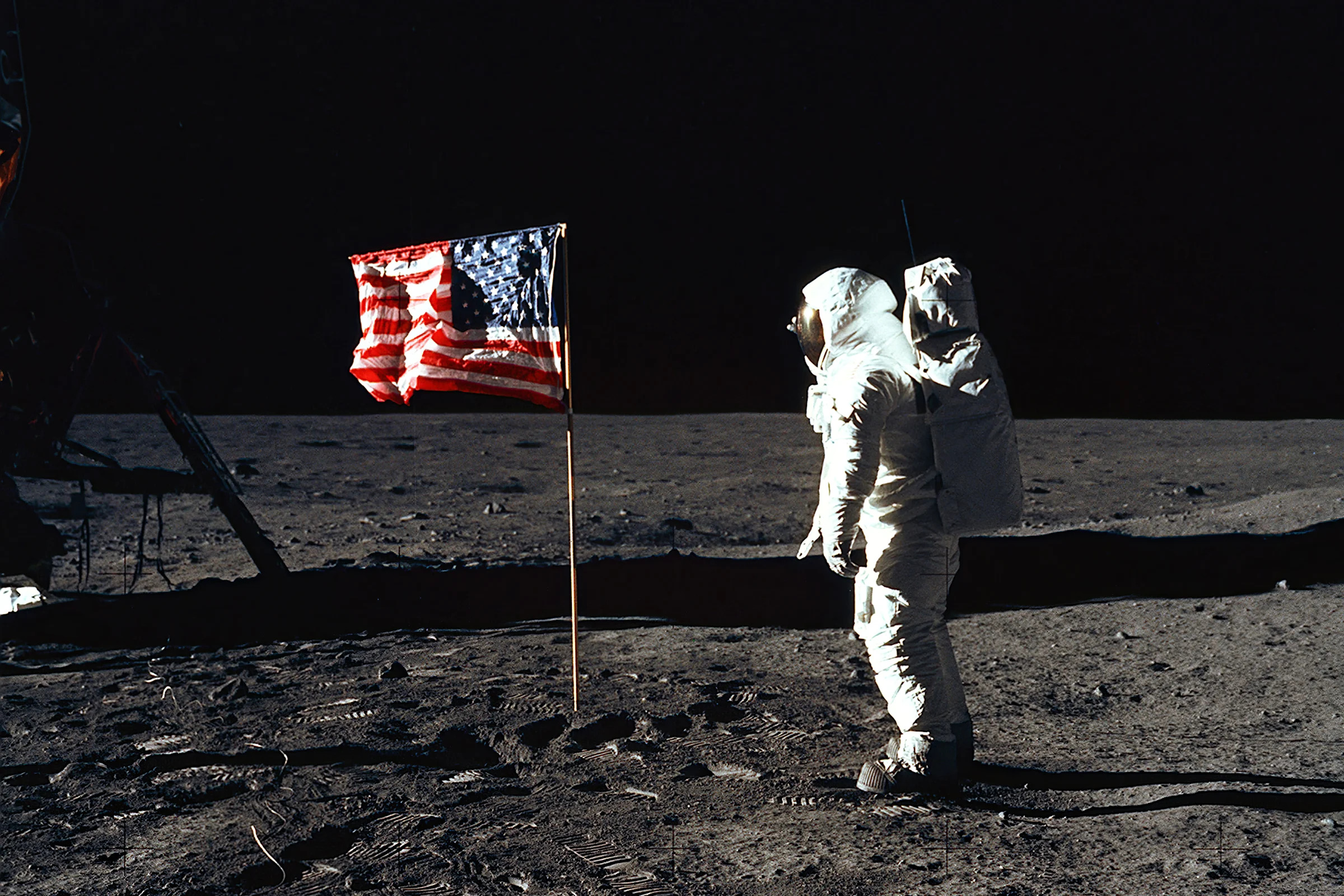 Then America followed through. Less than seven years later, on July 20, 1969, Neil Armstrong and Buzz Aldrin descended from their lander and left humankind’s first lunar footprints.