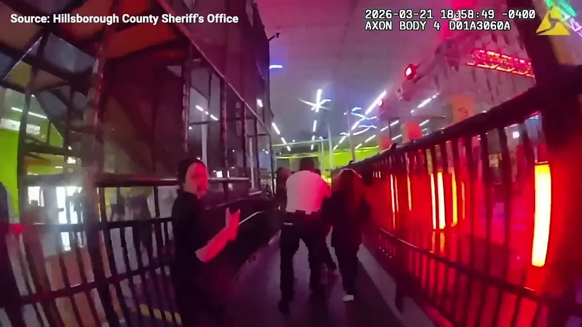 Law enforcement officers made eight arrests at Air Trampoline and Adventure Park during a chaotic teen “takeover” in Brandon, Florida on Saturday, March 21, 2026. (Credit: Hillsborough County Sheriff's Office)