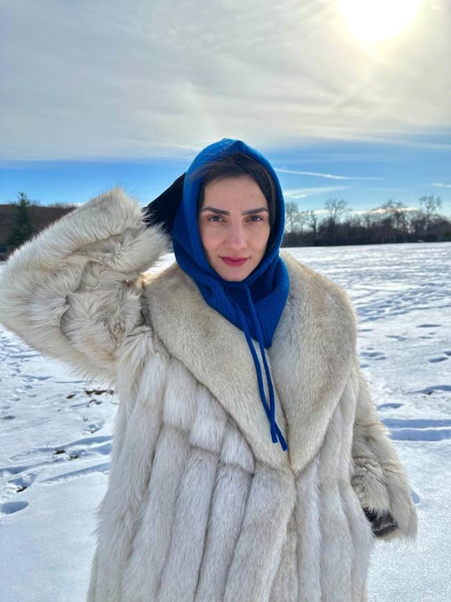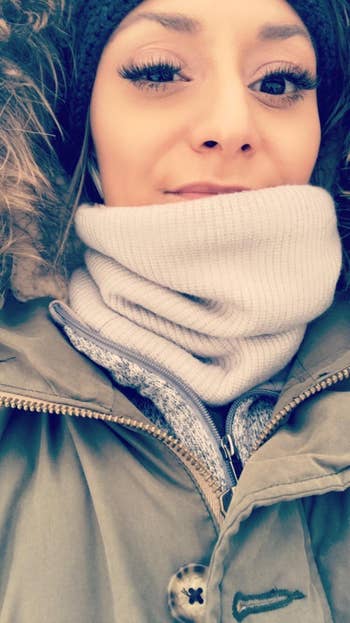Promising review: "Used this on a European trip since the weather was unpredictable with wind and rain. It was perfect! Wore it under a black coat. Looked like a scarf, kept my neck warm, and I could put it up as needed. A good purchase!"    —Jide's Mom