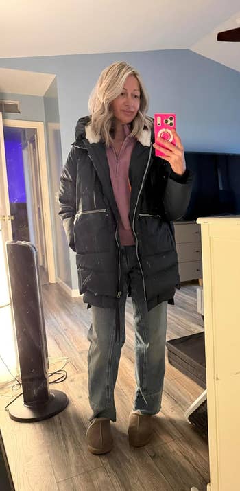 Promising review: "I have had this jacket for a year now, and I love it! It still looks like new, and I have used it to death. It fits great, and by great, I mean the sleeves, cuffs, and bottom of the jacket fit perfectly, but the body of the jacket allows for layers underneath. The hood is amazing, soft, and super warm. The jacket also has a ton of pockets. You do not need a purse when wearing this jacket. All of the pockets except the two by the waist are zippered, so nothing will fall out." —foodia