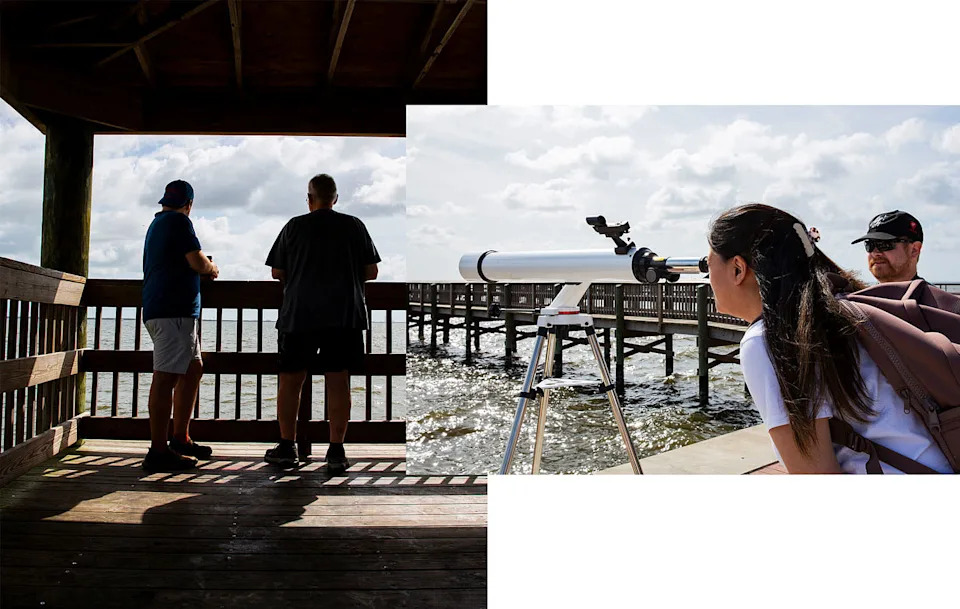 TITUSVILLE, Fla. — Launch fever has descended on central Florida’s “Space Coast” as NASA prepares to send astronauts toward the moon for the first time in more than 50 years. Locals and visitors who came in for today's launch are jockeying for a prime spot to see the Artemis II mission lift off, with some resorting to extreme measures. Follow live updates about NASA's Artemis II moon launch here. Pat Dimond traveled from Colorado to watch the historic event with her childhood friend Kathy Walker. They snagged front-row seats Saturday morning at the end of a pier at Space View Park, which is located across the Indian River from the launch pad. The area has clear views of the enormous Space Launch System Rocket and Orion capsule, which will carry humans for the first time on this mission. With more than 30 hours still to go until the launch, Dimond and Walker were prepared to camp out on Tuesday to protect their spots. They even used a cable lock to secure their folding chairs to the dock. Robert Pittman, 50, traveled from Dallas and contemplated sleeping in the back of his pickup truck to stake out a spot to set up his telescope. And Aaron and Jessica Bialke drove 25 hours from Minnesota with their three young sons for a winter getaway. When they heard about the timing of the Artemis II launch, they extended their trip for the “once-in-a-lifetime opportunity.” After several delays earlier this year, excitement has been building for the launch, which is scheduled for Wednesday at 6:24 p.m. ET. NASA ground crews have already started fueling up the 322-foot-tall rocket. Hundreds of thousands of people are expected to try to catch a glimpse of the launch along the Space Coast, the nickname given to the parts of Florida’s Brevard County that surround NASA’s Kennedy Space Center, from Titusville in the north down through Cocoa Beach and Melbourne in the south. The Artemis II crew — NASA astronauts Reid Wiseman, Christina Koch and Victor Glover, and Canadian astronaut Jeremy Hansen — are expected to spend 10 days in space, orbiting the Earth then looping around the moon. Although the astronauts will not land on the lunar surface, the mission is NASA’s first moon-bound flight since Apollo 17 in 1972, so interest has been high. A previous, uncrewed launch of this rocket and capsule, the Artemis I mission, drew crowds to the area in 2022, but this go-round feels markedly different, according to Peter Cranis, executive director at the Space Coast Office of Tourism. “In 2022 for Artemis I, we estimated between 200,000 to 250,000 people were from out of town,” Cranis said. “It’s very likely that we’ll exceed that.” For Todd Seymour, 61, memories of watching broadcasts of the Apollo missions compelled him to make the trip from Columbus, Ohio, to Florida with his twin brother for Artemis II. “I remember sitting in front of the black-and-white TV when we were wee little lads, watching Apollo 11,” he said. “To not have ever seen a launch before in person, that’s kind of a bucket list thing for us.” Out on the pier at Space View Park, Dimond said the reasons she journeyed to Florida for this launch were deeply personal. Her husband, who died three years ago of Covid-19, was a self-professed space nerd since childhood. “He had been a space guy since the beginning of [Project] Mercury. He went to space camp the first year that they let adults go. He knew everything about every launch and he always wanted to see a launch,” Dimond said. She wanted to witness Artemis II lift off to honor his memory. As she gazed across the Indian River, Dimond touched her husband’s wedding ring, which she now wears on a chain around her neck. She also has a special keepsake ring imprinted with her husband’s fingerprints. “He would be so amazed by this,” she said. At the Kennedy Space Center Visitor’s Complex on Merritt Island, the Bialke family from Minnesota spent Saturday strolling through exhibits about NASA’s history and the future of commercial spaceflight. Their sons, 11-year-old twins Kade and Jace, and 10-year-old Gage, were brimming with excitement to see rockets and space capsules up close. “We’ve been trying stuff out and pressing a lot of buttons,” Kade said. The Artemis II event will be the family’s first time seeing a rocket launch in person. Aaron said they planned to drive into Titusville to find a viewing area that isn’t too overcrowded. The influx of visitors to coastal stretches of central Florida, while challenging for traffic, is a major boost for the local economy. Beachfront hotels sold out weeks, if not months, in advance. And many local businesses are getting in on the launch fun. An Ace Hardware in Titusville featured a photo of the astronaut crew on its sign, advertising that the store carries all supplies needed for launch-viewing. A shop in Cocoa Beach was selling special launch merchandise, including an Artemis II Hawaiian shirt. The Playalinda Brewing Company, meanwhile, created a themed pale ale dubbed Artemis IIPA. “Back in 2022, Playalinda released an Artemis Pale Ale, but with this new venture, we wanted to step it up, so it became the Artemis II Double IPA,” said Ronnie Chabot, one of the company's four owner-operators. After the beer was released on Feb. 3 — ahead of NASA’s first targeted launch window that month — Chabot said cans and draft sold out in days. The brew’s retro-looking labels show the Space Launch System rocket and the Orion spacecraft, with an “Easter egg” for space nerds: The moon is depicted in the exact phase it would have been had Artemis II launched in the February window. When NASA was forced to forgo launch opportunities that month, Playalinda decided to make another, bigger batch. Those cans also sold out quickly. “It was the fastest thing we’ve sold out at this brewery,” Chabot said. Donald Atwell, another Playalinda owner and its brewmaster, said he used “the most space-the