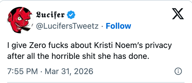 Noem is apparently neither in their thoughts nor in their prayers. As BuzzFeed's politics lead, my job is to do the doomscrolling for you. Likewise, as DHS Secretary, Noem has defended ICE raids despite them extending to people's bedrooms — like in Chicago, when ICE agents flooded an apartment building, dragging people from their homes at midnight and zip-tieing both immigrants and US citizens.