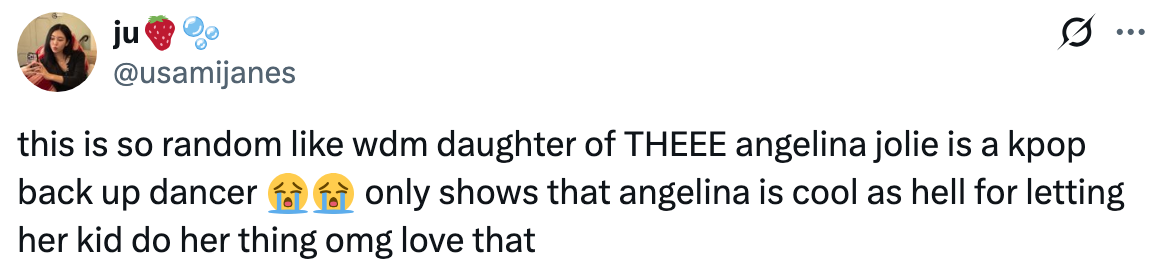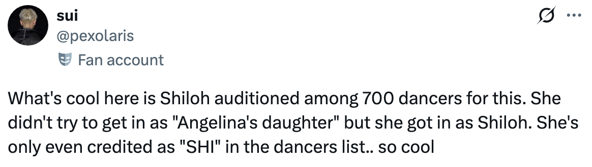 “shows that angelina is cool as hell for letting her kid do her thing.”