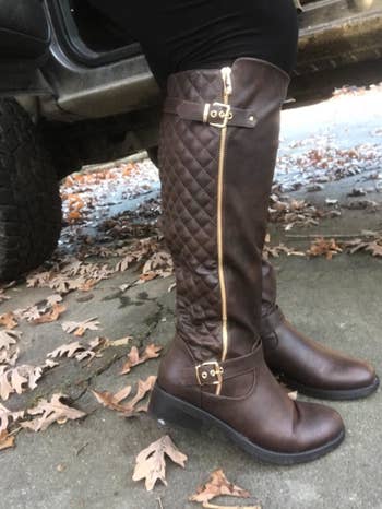 Promising reviews: "I was questioning at first if I would like these or if they would be good quality, but boy was I proven wrong. They are now my favorite boots, I wear them all the time — from work, to events, to going out, etc. They work for everything, and I can walk in them for hours, and I hate wearing heels for extended periods. They are cute, go with everything, can be worn anywhere, and are easy to clean if they ever get messy. The perfect boot, and I’ve worn them for a couple of years now; they're still walking as good as the day I received them." —Jacklyn