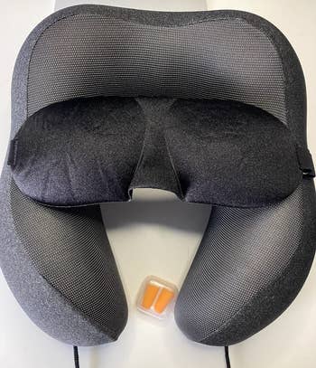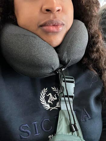 Promising review: "I used this pillow on flights from the eastern U.S. coast to Hawaii and back. The pillow was very supportive, and I appreciated that I could use it to lie back or to the side. The fastener strings were a nice touch to keep it secure, especially while sleeping. I sat in the window and aisle seats, and the pillow worked great for both (i.e., don’t need a window seat to lean against the wall). I have chronic neck pain, and the pillow helped me manage the pain during the long flights!" —Katie Sandlin