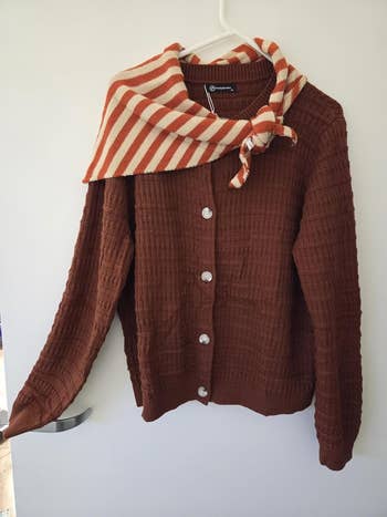 Promising review: "I ordered this scarf in two colors: coffee and green. I truly love both! I had considered getting a similar scarf from a trendy brand for $30, but I found this one and decided to give it a try! The quality is the same. I love how soft the knit is on my skin; it doesn't feel scratchy or overly hot like cheap knit usually feels. The size of it is perfect for draping over my shoulders, especially with a little scarf ring to tie it in front. I'm not quite sure how else I'll style it yet. Overall, I think these scarves are well worth the money! I highly recommend the brown one, very versatile!" —Ym