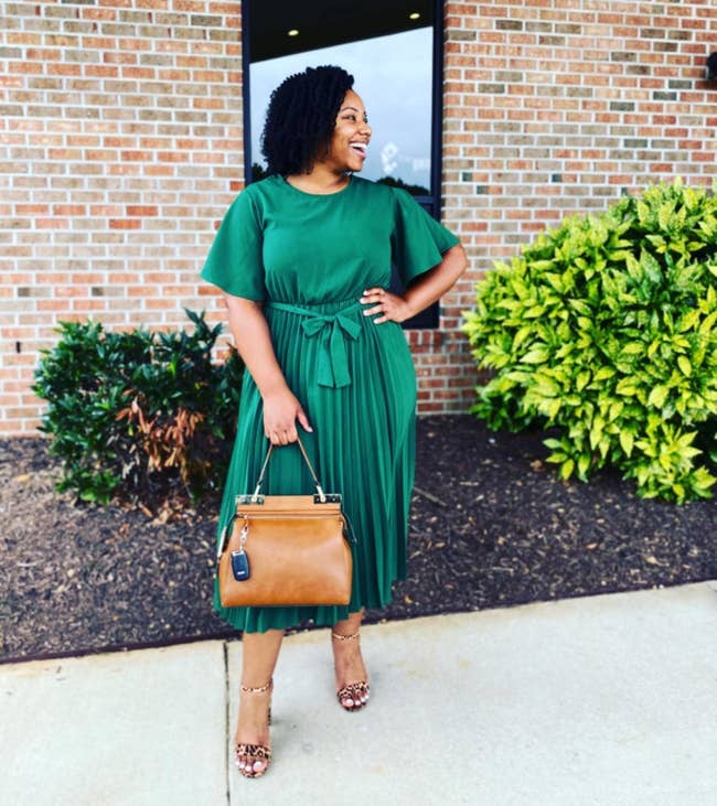 Promising review: "I love this dress! I wore it to a wedding and got several compliments. It is super comfortable, soft, and fun to wear. I wore it straight out of the package, and it didn’t get wrinkled throughout the night. I was worried about the fit, but it was great. I will be buying another color." —Dana Shaun