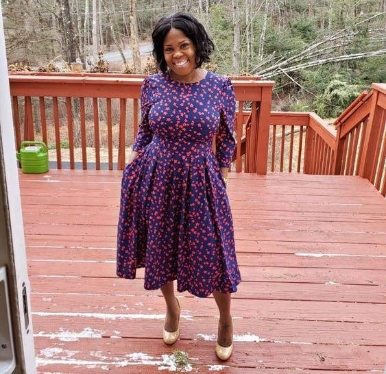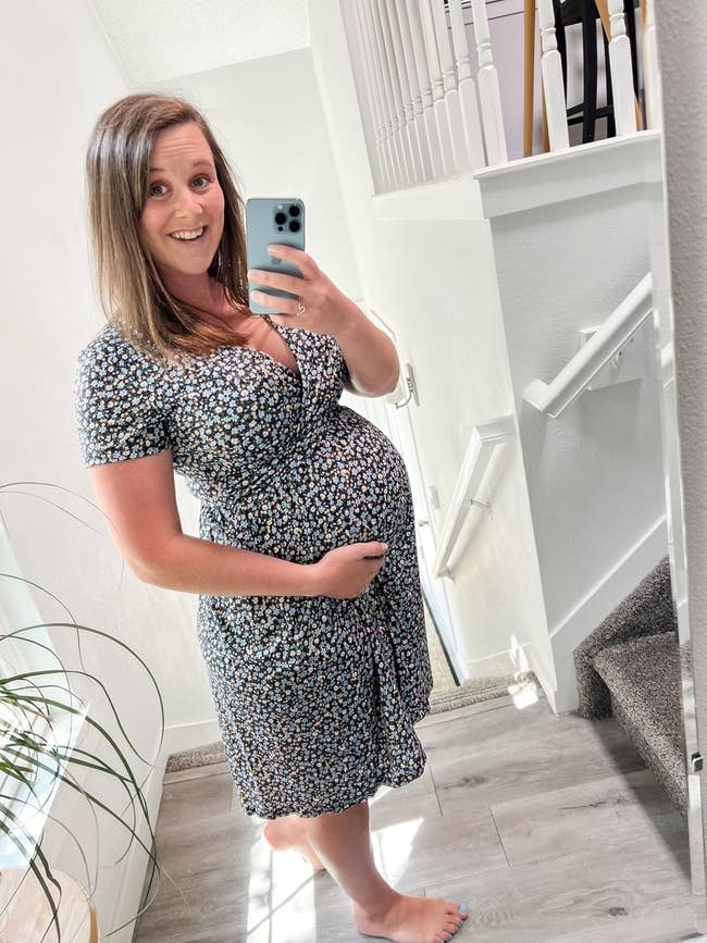 "Wore this dress for my baby shower and LOVED it! I ordered my pre-bump size and was surprised the dress zipped without a problem! The dress itself was comfortable and wasn’t too warm." —Amanda Nelson