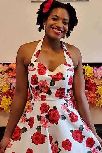 Promising review: "I purchased this as a last-minute dress for a wedding. It was snug above the waist but not snug enough where I was uncomfortable or had no movement. It fit perfectly!! The material is not cheap; it’s a nice, soft material, and you can have confidence it won’t fall apart in the washer or anything! Love it. I’ll probably buy another one in a different pattern." —Liz Garcia