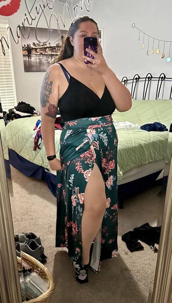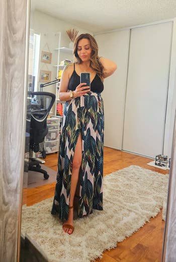 Promising review: "I was a little nervous about the size and the material, but I love this dress. It fits perfectly! The slit does go all the way up, but it isn’t just open; it didn’t open while I was walking around. I love the color, the design, it’s so soft,and the straps are adjustable. Definitely worth the money!" —Caliexandria