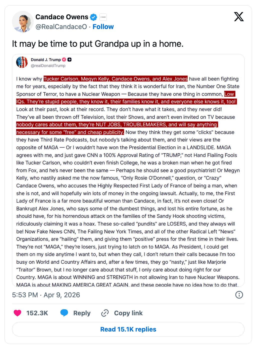 Candace Owens' Response To Trump's Truth Social Rant Slamming Right-Wing Podcasters Is Going Viral