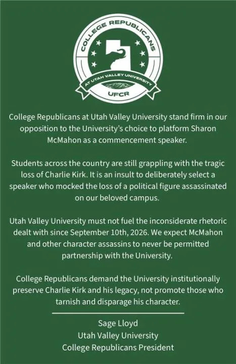 PROVO, Utah (ABC4) — Opposition has grown at Utah Valley University in the days since the school announced the chosen commencement speaker for the class of 2026.