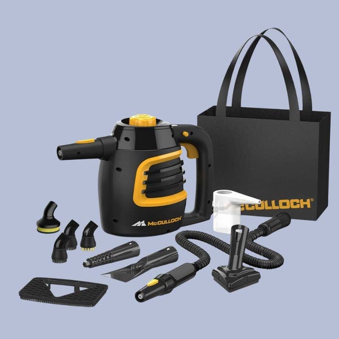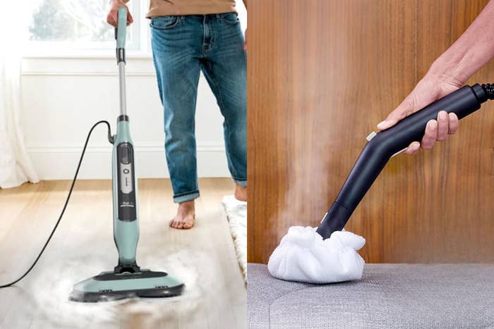 We hope you love our recommendations! While every product is independently chosen by our editors, BuzzFeed and our publishing partners may collect a share of sales or other compensation from the links on this page. You can read more about how our affiliate partnerships work in our Editorial Standards & Ethics Guide. Use these if you want a true deep clean, without the use of bleach or chemicals. Brandon Pleshek, a cleaning expert and educator, said that steam cleaning uses heat instead of chemicals to break down grease, grime, and buildup. The steam, according to Pleshek, can reach into tiny pores and cracks that traditional wiping sometimes misses, making it great for things like grout, shower tracks, and textured surfaces. “I like to explain it this way: traditional cleaning is like wiping dirt off the surface, while steam helps loosen what is stuck underneath, so it is easier to remove,” Pleshek said. “It can also help sanitize surfaces because of the high temperature, which is a nice bonus, especially in bathrooms and kitchens.” And because steam cleaning is intended to work without the use of cleaning solutions or bleach, it can be applied to other areas of your home that you may not have thought of, like refreshing all your soft and not-as-easily cleaned surfaces. “Steam can help loosen stains in carpet or upholstery because the heat breaks down what’s trapped in the fibers. It [also] works well for refreshing fabrics and lifting surface stains,” said Ashley Dixon, a home and cleaning expert and content creator. Depending on which appliance you use, steam cleaning can even help smooth wrinkled curtains without removing them from the rod, and can be applied to difficult areas like around fixtures where cloths or sponges don’t always reach, Dixon said. Like anything, steam cleaning has its limitations and, in some cases, should be used as a preliminary step to your cleaning process to make things easier. “I always like to say steam is a tool, not a magic wand. It works best when you still pair it with good technique, like wiping after steaming and using clean microfiber towels,” Pleshek said. Lori Williamson, lifestyle and cleaning expert of Now It’s Clean, said that if there’s visible dirt or debris, like crumbs or buildup, it’s better to remove that first before going in with steam. “Also, not every surface is suited for steam cleaning. I wouldn’t use it on hardwood, laminate, or engineered wood floors, because over time the heat and moisture can damage the finish or cause warping,” Williamson said. You can start using the power of steam to clean your home with several easily acquired appliances, such as steam mops, hand-held tools or a combination of the two. Find out which ones the above professional cleaners use for their own tasks and what might be a good fit for your needs in the list ahead. The experts consulted for this story do not necessarily endorse the products ahead unless otherwise noted. Dixon said she prefers versatile handheld steam cleaners with multiple attachments instead of single-purpose tools like steam mops. She said that a variety of attachments make it easy to move from the kitchen to the bathroom to the laundry room without switching machines "I’d rather have one machine that can clean grout, shower doors, stove tops, window tracks, and upholstery than several different tools for each job," she said. Based on her preferences, we chose to include the McCulloch handheld steamer, which currently has 4.3 out of 5 stars on Amazon, across over 44,000 ratings. Among the 11 different attachments, there's a jet nozzle with a scraper tip for concentrated steam power, as well as a triangle brush for getting into corners and various detail brushes for getting into grout and along moldings, plus a 34-inch extension hose for reaching higher up areas. With a six-ounce direct-fill tank that promises to heat up to 200 degrees in under three minutes, the McCulloch promises up to 10 minutes of uninterrupted steam cleaning before you need to refill. (You can also shop the model with the full-size mop attachment down below). We selected another handheld steamer that's priced the lowest out of all the options on this list and the most diminutive. Rated 4.2 out of 5 stars on Amazon, across 9,700+ ratings, this steamer offers 1050 watts of pressurized power and reaches temperatures of up to 230 degrees in as little as eight minutes. It comes with 12 attachments, such as a wide flat head for smoothing and refreshing pillows and couches, four targeted scrubber tools for grout and a concentrated nozzle for harder jobs. Get it from Amazon for $49.99 (also available in orange). Both Williamson and Pleshek recommended the Dupray Neat, a powerful and versatile steam cleaner that reaches temperatures of up to 275 degrees and has a large tank capacity that allows for up to 50 minutes of continuous cleaning. "When I first started seeing it all over social media, I will be honest, I was a little skeptical. But after testing it myself, it really lives up to the hype. I love how versatile it is," said Pleshek, who also called the Dupray a "stand-out" among the many steam cleaners he has tried over the years. According to Pleshek, he likes that this cleaner comes with so many attachments (17 to be exact, though you can get models that offer up to 40), and that you can really use it to clean just about anywhere in your home. The Dupray comes with a wheeled receptacle so you can drag it along while you mop floors, reach countertops and back splashes, or even use it for outside tasks like cleaning outdoor furniture. This model comes with everything from microfiber mop pads to crout brushes that fit into tiny corners. According to Williamson, the Bissell Powersteamer 3-in-1 mop is a versatile tool that you can use on floors, grout, and a variety of other surfaces, and the different attachments let you get into more detailed areas. In fact, it's the only one on our