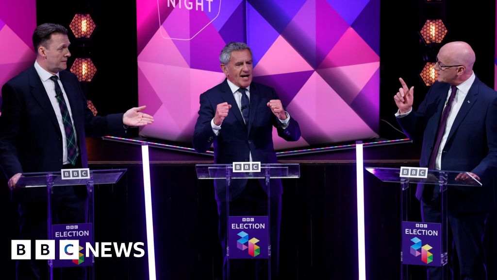 Scotland could have a second independence referendum as soon as 2028, First Minister John Swinney has said. The SNP leader, who was facing other party leaders in a BBC Scotland Debate Night special in Paisley Town Hall, said it was "perfectly conceivable" that a vote on the constitution could be held within two years. Green co-leader Ross Greer said Scotland's future should be "in Scotland's hands". But Labour leader Anas Sarwar said next month's election was "not about independence", while Conservative chief Russell Findlay said the break-up of the UK would be an "unmitigated disaster". Reform UK's Scottish leader, Malcolm Offord, said another referendum would be "divisive" - but did not rule out a future vote if support for a Yes vote reaches 60%. Alex Cole-Hamilton, Scottish Liberal Democrat leader, said he had not given a second referendum "a moment's thought" because he was focused on other issues. The party chiefs - who were asked questions by a live studio audience - also clashed over immigration, the NHS and energy during the debate. A second independence referendum would need to be signed off by the UK government. However, Prime Minister Sir Keir Starmer has said he cannot imagine another vote taking place during his time in 10 Downing Street. Earlier on Sunday, Health Secretary Wes Streeting told LBC: "We're not having one" and added that "this country has had enough of chaos". At the BBC debate, Swinney told the audience the people of Scotland were "entitled" to decide their own constitutional future. However, he said the country was stuck in a "constitutional logjam" that could be broken by an SNP majority - which the party achieved ahead of the 2014 referendum. The first minister urged voters to deliver an "emphatic mandate of an SNP majority so the future of our country can be taken into our own hands". Asked when the vote could be held, he said it was "perfectly conceivable to have a second referendum by 2028". Greer said a majority of pro-independence MSPs - from the Greens or SNP - in the next parliament would represent a mandate for a referendum. He told the audience it was "profoundly anti-democratic" for Westminster to deny Scotland a second vote, and said independence could help the country solve major issues it faces with the NHS and economy. Sarwar said the Scottish government should be focused on fixing the NHS, providing good jobs, building more homes and bringing down cost of living. He added: "This election is not about independence, it's about having a government that works for the people of this country." Findlay warned that a referendum could be given the green light by a "weak" prime minister, insisting his party would "stand up for Scotland's proud place in the union". He urged Swinney to "get on with the day job", adding: "By every measure you've been distracted and Scotland has got worse." Offord said: "People want Holyrood to get on with the day job and improve people's lives." However, he accepted that the situation could change if support for independence increased. Cole-Hamilton said the government should focus should be on other issues – citing the NHS, education and cost of living. Control over immigration and borders is reserved to the UK government, but it has emerged as a major issue during the Holyrood election campaign. Offord said he wanted "cohesion" in Scotland's communities - but claimed some people coming to the country were "jumping the queue" to the detriment of local people. Findlay said: "People in Glasgow and other communities are seeing a system at breaking point with too much pressure on local services." Glasgow houses more asylum seekers - about 3,800 - than any city outside of London. Glasgow City Council leader Susan Aitken told BBC Scotland News last year that the city had essentially "run out of temporary accommodation". Greer called Offord a "chancer" and called for more immigration to Scotland. "The problem is we do not have enough immigration to meet the needs of the country," he said. The Green co-leader said immigrants are needed for the NHS, social care and rural communities. Cole-Hamilton accused Offord of "trying to win an election based on dividing the people of Scotland". He said that while there was a problem with small boats crossings, immigration was needed to plug a "skills crisis". Sarwar accused Offord of "questioning my loyalty to my country" and accused the Reform UK leader of attacking people from migrant backgrounds. He said while skilled workers were needed for the economy, there was "unfairness" in the immigration system due to "illegal migration". Swinney said some of the rhetoric on immigration had been "inflammatory" and backed calls for the UK government to allow asylum seekers to work. There is a dispute ahead of every election in Scotland about whether it might lead to an independence referendum. The UK Supreme Court ruled in 2022 that the constitution, including the union between Scotland and England, is a matter for Westminster rather than Holyrood. Former First Minister Nicola Sturgeon had brought the case to query whether MSPs could legislate for an independence referendum. Judges unanimously concluded that they could not do so without a transfer of powers from Westminster - known as a "section 30 order" - as happened ahead of the previous vote in 2014. The question is whether the SNP can persuade UK ministers to grant such an order again. The party had previously argued that a pro-independence majority at Holyrood should be enough to do this. But the SNP and Greens had just such a majority last term, at the time of the Supreme Court ruling, and John Swinney now says an outright SNP majority would provide a mandate - noting that this is what happened for the 2014 vote. In recent years Scotland has struck out on a different path to the rest of the UK when it comes to income tax and social security. Elections are taking place across the country in May. Use our postcode lookup to find out if ther