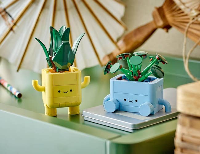 Promising review: "Great set, simple build, cute faces, and love that the plants are swappable between the two. I would recommend this set to anyone looking for a cute deco set and would absolutely buy it again!" —Alex