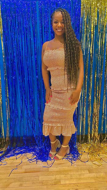 Promising reviews: "Bought this dress because I always wanted to get the House of CB dress but didn’t want to pay over $250 for it. It’s honestly so good! I got the size large in this since they didn’t have my normal sizes, which are small to medium (I have a bigger chest, so I tend to size up). But since this has a corset back, I was able to cinch it up really tight, and it fit perfectly!" —Chris Herfurth Kennedy