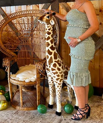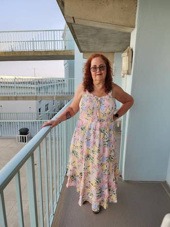 Promising review: "I’m 5'2 and currently 33 weeks pregnant. I’m normally a small and I ordered a small. The dress was snug, but is a stretchy material so it stretched well to fit the bump. I got a lot of compliments on it when I wore it to lunch and from others on social media. I’m short and wore flats so you’ll see it did not really go all the way down to the floor. It has adjustable straps and the material is like a thick sweater stretch material." —Jessica