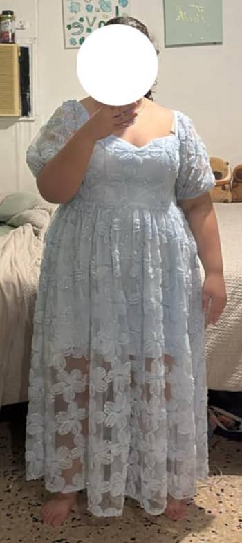 Promising review: "This dress is a showstopper! I ordered it for family pictures, and it didn’t disappoint. The material is super soft and not see-through at all." —daniel cowen