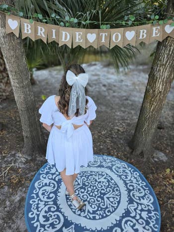 Promising review: "This little dress is a delightful addition to any fashion-forward wardrobe. The mini dress exudes sophistication with its deep V-neckline and charming bow tie detail, adding a touch of elegance to your ensemble. It has a pretty lightweight and breathable fabric and it's perfect for staying cool and stylish during the warmer months. I wore this dress in white on Easter and received so many compliments! The mini length adds a flirty vibe, while the flowy silhouette ensures comfort and ease of movement. Whether you're attending a brunch with friends or a summer soirée, this dress is sure to turn heads!" —Petflix