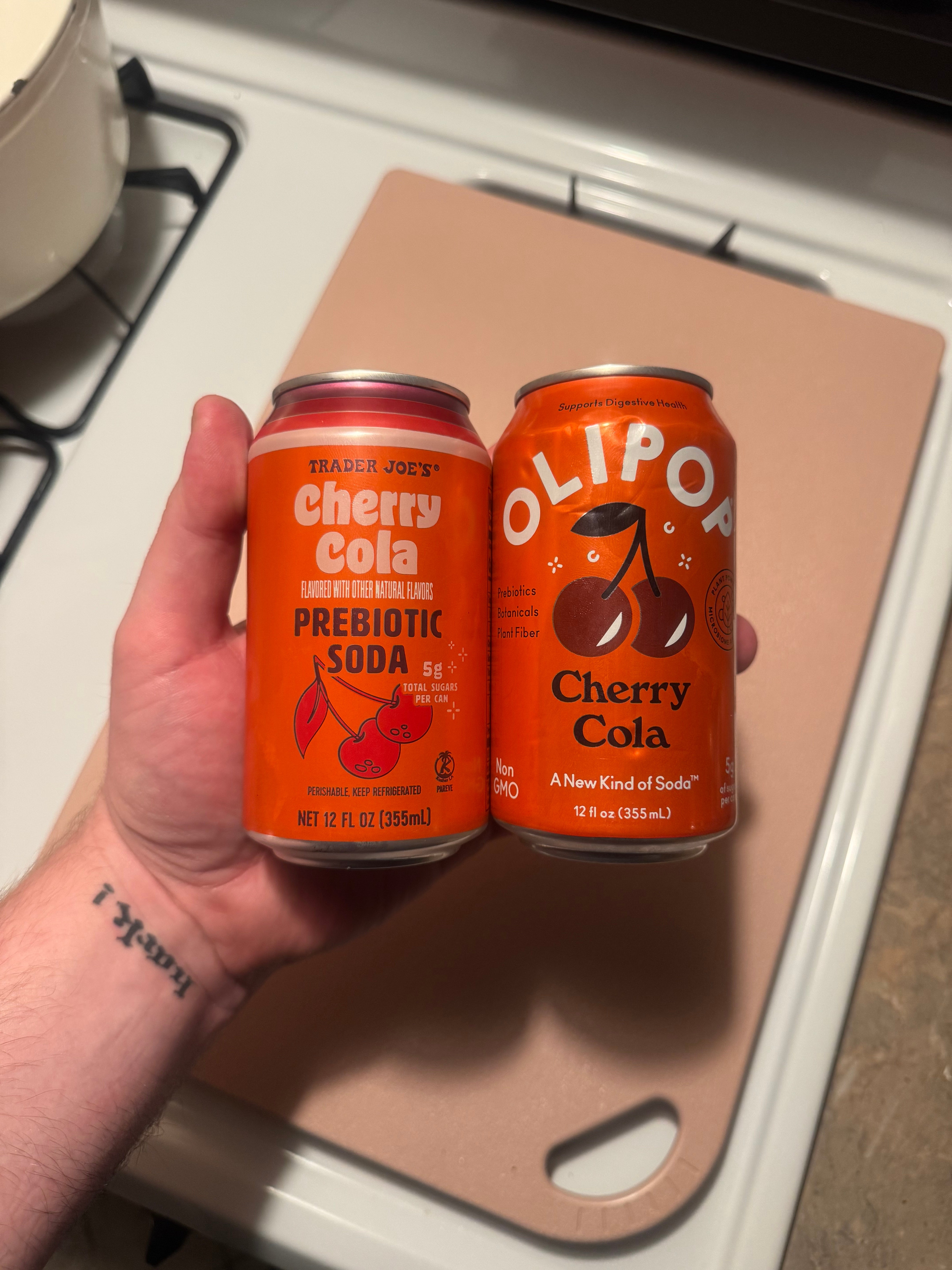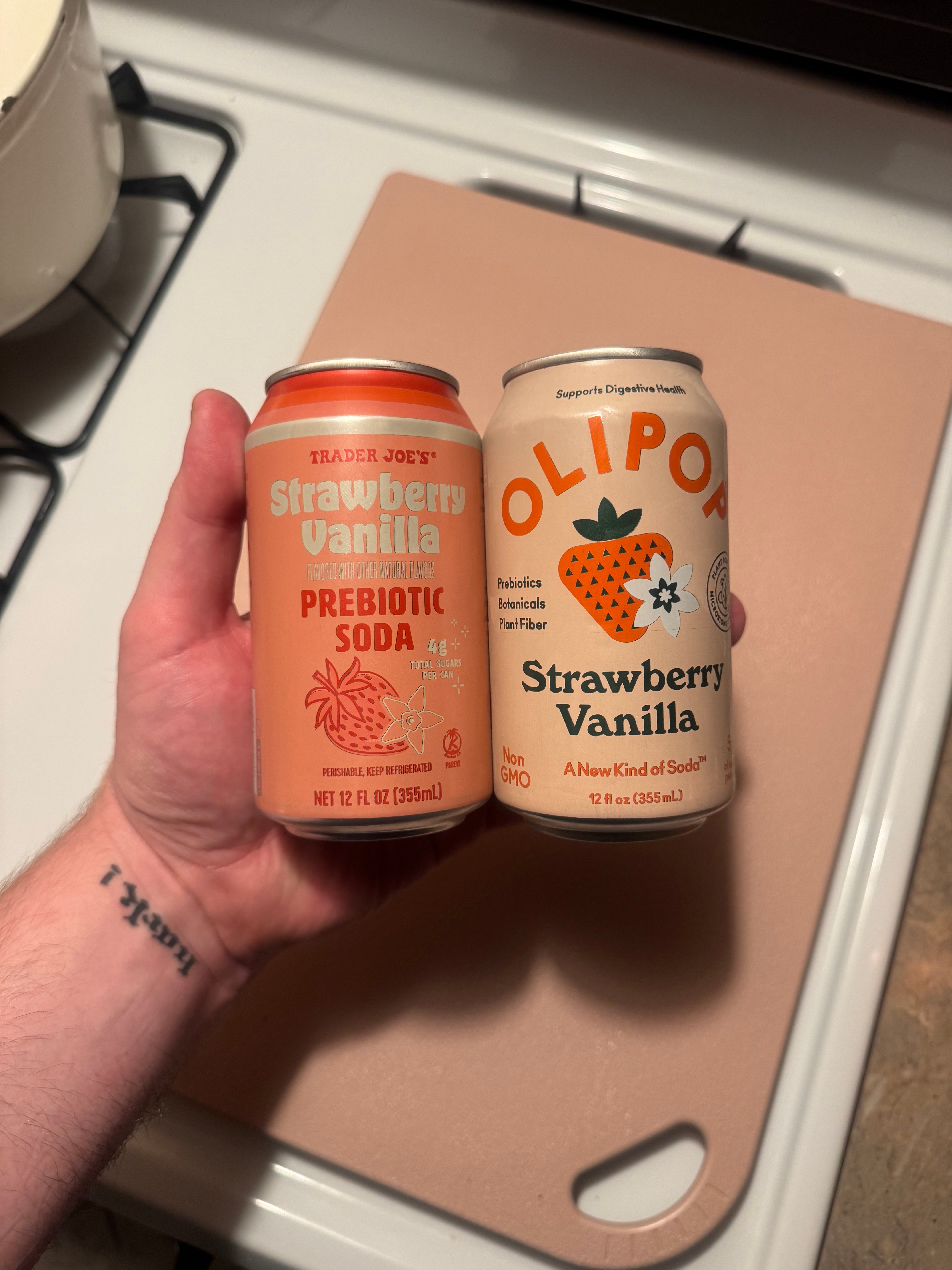 Is there room for Trader Joe’s at the prebiotic soda table? I’m here to find out. I'm a writer based in Brooklyn that covers restaurant and recipe trends for Tasty. The Trader Joe's lineup of prebiotic sodas costs $1.99 a can, while at my local Whole Foods, Olipop costs $2.59 a can. Each category was ranked 1 (awful) to 5 (incredible). For sweetness, however, a 5 means very sweet, and a 1 means not sweet at all (a low score isn't negative; it's just indicative of less sweetness).