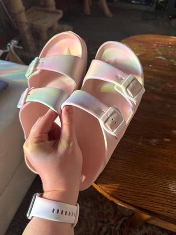 "These slides are — and I mean this in the best way — marshmallows that mold to your individual feet. They are SOOOO comfortable. I’ve been working from home since the start of the pandemic, and I ordered them to wear in my house after I read that walking around barefoot long-term isn’t great for your feet. I wanted something with a little support but that would be comfortable. The reviews for these looked good so I ordered a pair, and now I never want to take them off. The material in every part is molded and squishy so there are no unexpected parts that dig into your skin or chafe. But they’re structured enough to provide some support for your arches. 10/10 highly recommend!" —Carrie B