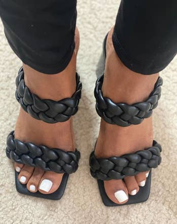 Promising review: "I adore these shoes! The braided straps are nice and flexible, so they don't dig into the tender skin on your feet when you're walking in them. I found it doesn't hurt after wearing them for extended periods of time, which I attribute to the thick heel. I only have a handful of events where I wear open-toe shoes, and these are so versatile that I can really wear them with anything! I hope they go on sale soon so I can buy a pair in mocha...if I can wait that long :)" —Jena